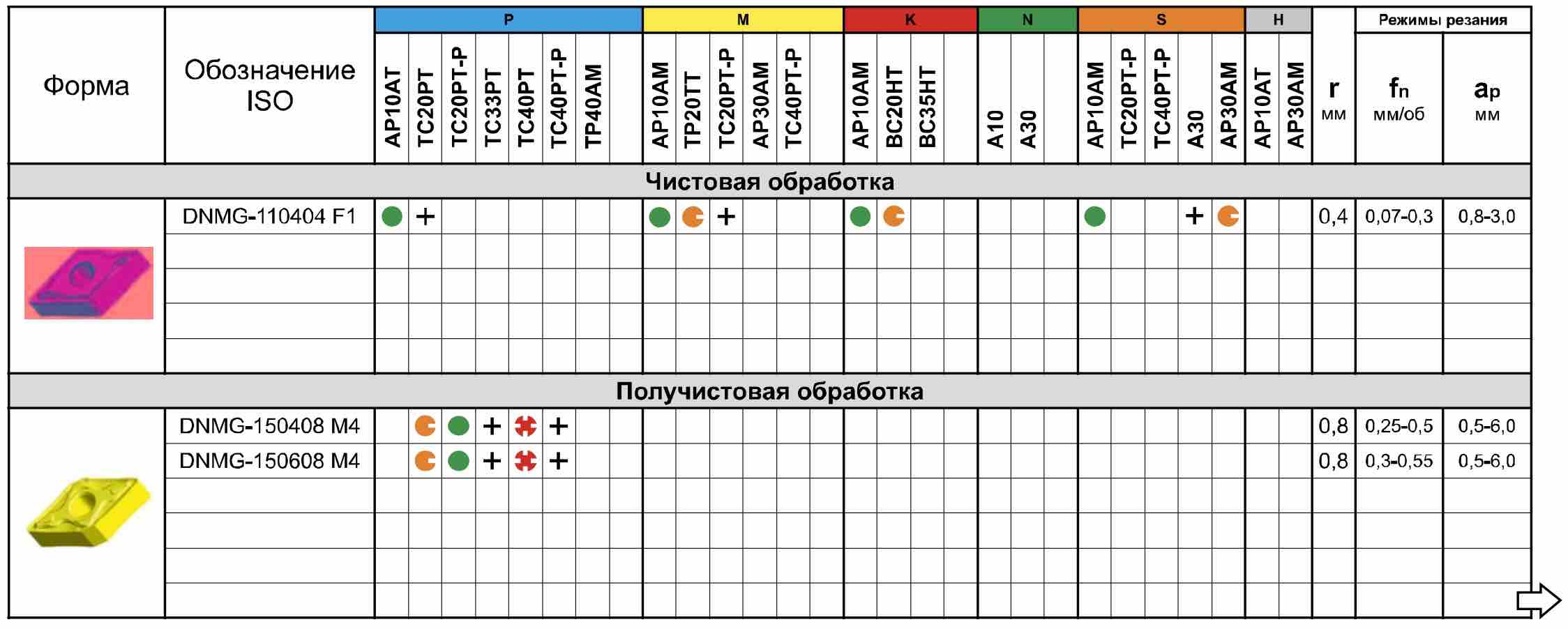 Обозначение: DNMA-150408, DNMA-150608, DNMA-150612, DNMG-110404 F1, DNMG-150408, DNMG-150408 M4, DNMG-150608, DNMG-150608 M4, DNMG-150612 PR, DNMG-150612 R2